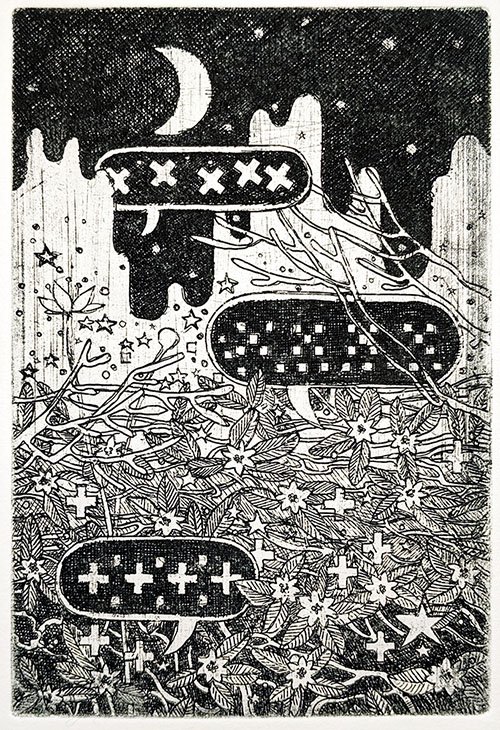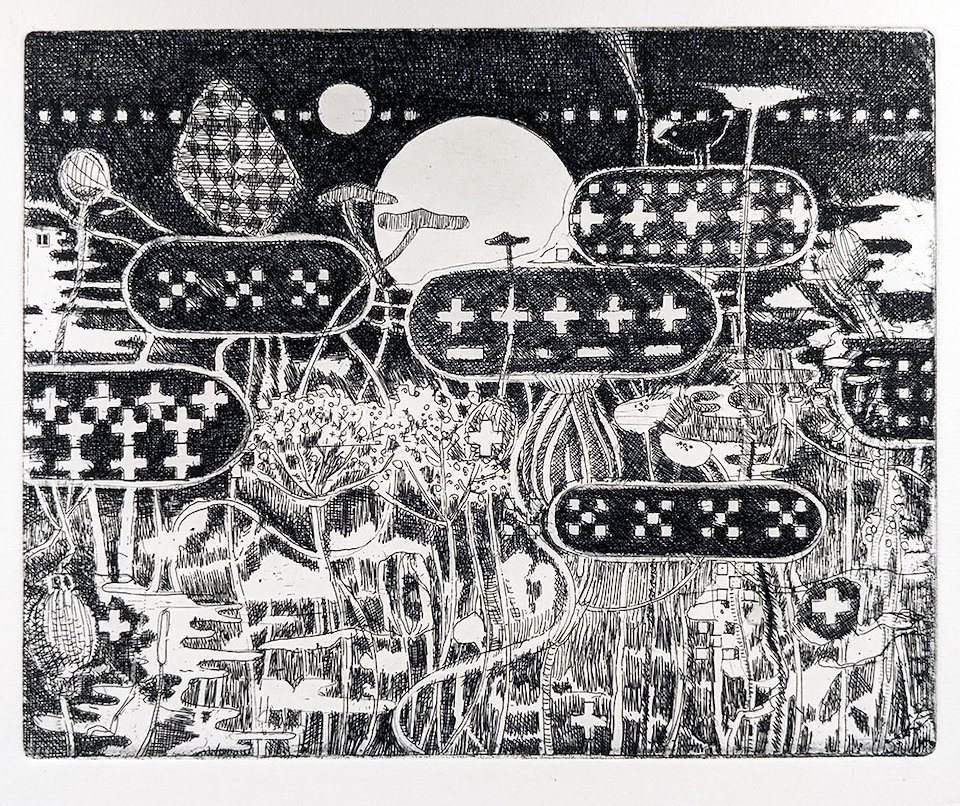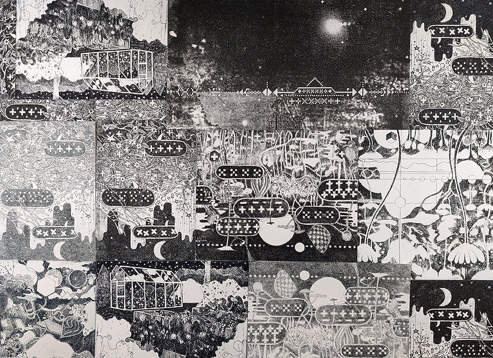 Mixed media (ink, watercolour, silkscreen and woodcut) / collage on paper