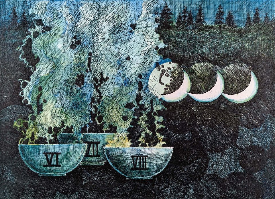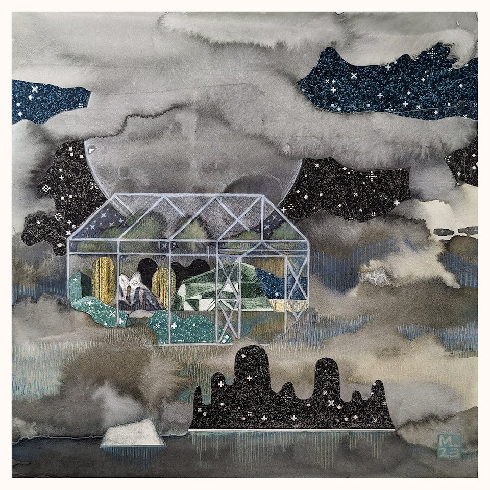 Watercolour, coloured pencils & printmaking collage on Fabriano Artistico paper