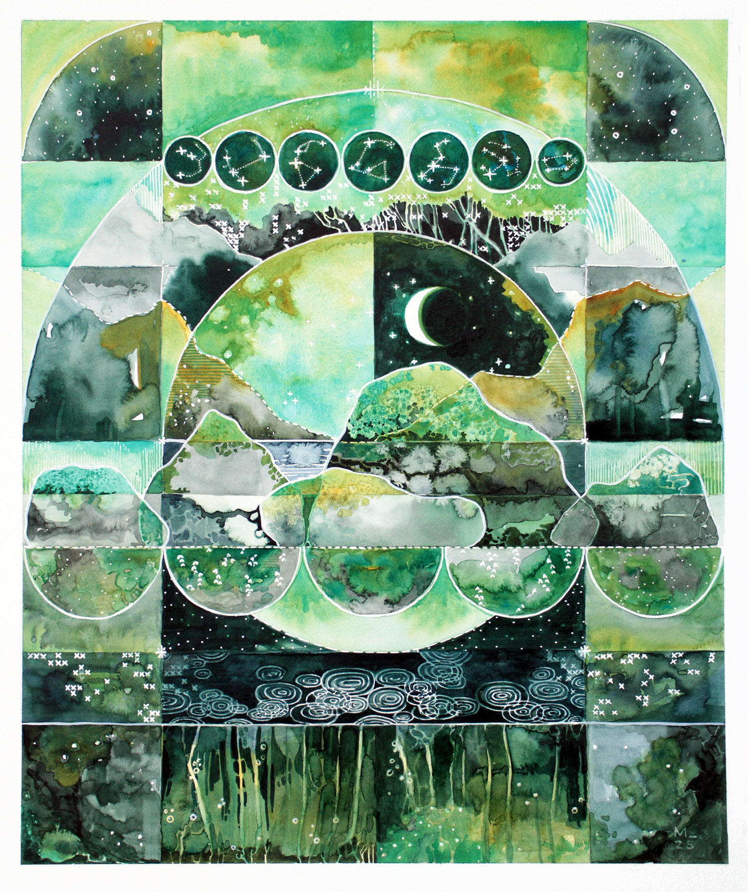 Watercolor & gouache collage on stretched canvas